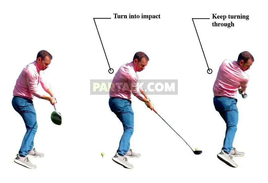 Many golfers hold onto the club too long through impact, leading to slices.